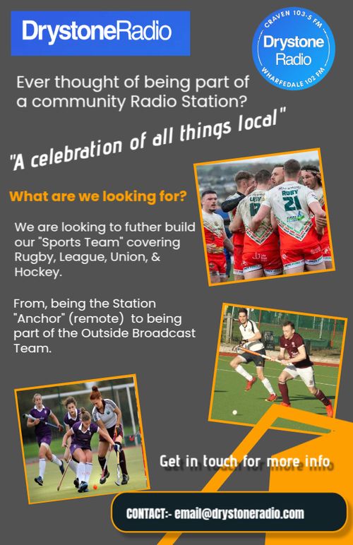 Join the team, let your sport knowledge flow free, if you are interested why not get in touch: email@drystoneradio.com we look forward to discussing.
